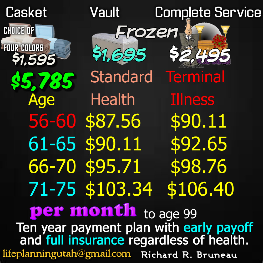 First, make sure the funeral home you select is the best value (lowest cost) for your money with about 150-200 miles of where you live. Choosing the right funeral home automatically tilts odds in your favor of cutting your total payout by thousands. Secondly, the best value funeral home should also not raise prices very often. This has the inflation factored licked. My number one choice is Premier Funeral Services, which serves the entire state of Utah at lowest cost. Stay away from chains, publicly-traded, and over-priced funeral homes.