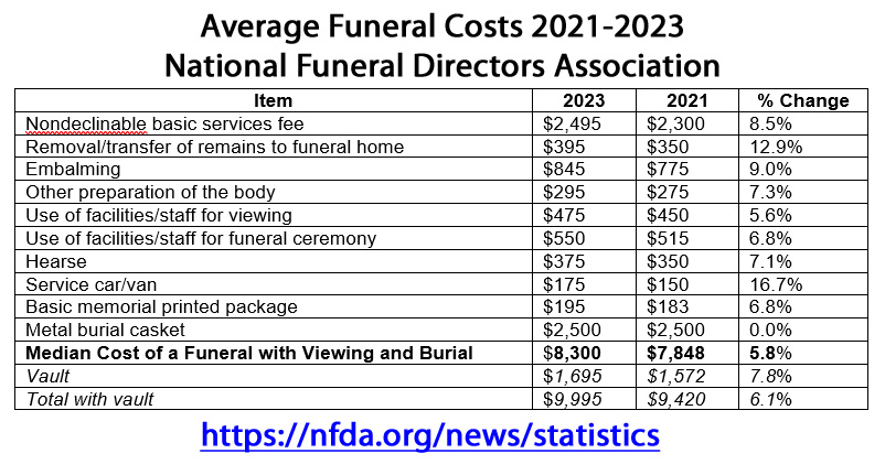 If you follow my recommendations and use Premier Funeral Services, a complete burial and funeral (burial plot already paid) will come to less than $9,000.