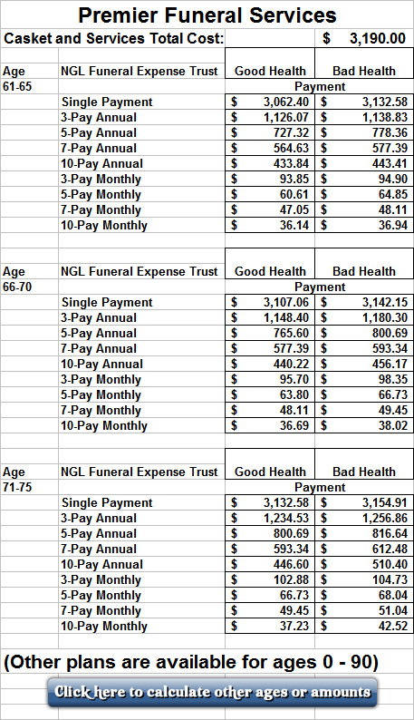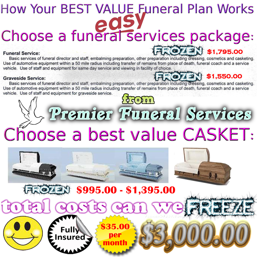 Don't let any funeral home salesperson convince you that a guaranteed, pre-paid funeral with insurance has to cost $100 per month. Get real. $35 per month is enough to get what you want.