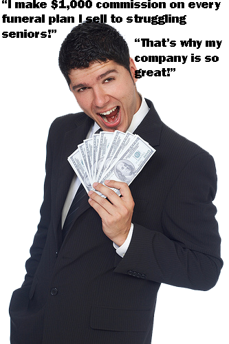 "The key to controlling future funeral and cemetery costs is to arrange and pay for them in advance." "...people will purchase more in an emotionally charged at-need moment than they will in a calmer and more stable pre-need moment." "Pre-planning is absolutely the best thing you can do to ensure that you get the final arrangements you want and save money at the same time." "In my opinion, insurance policies are the best way to go. The insurance industry is highly regulated. Also, insurance companies are typically more balanced and more stable than most death merchants. Even when insurance companies go bankrupt, state and federal agencies come to the rescue of policyholders. Certainly the same cannot be said of funeral homes and cemeteries!"