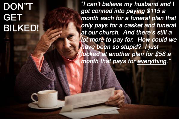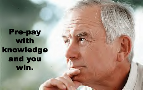 "The key to controlling future funeral and cemetery costs is to arrange and pay for them in advance." "...people will purchase more in an emotionally charged at-need moment than they will in a calmer and more stable pre-need moment." "Pre-planning is absolutely the best thing you can do to ensure that you get the final arrangements you want and save money at the same time." "In my opinion, insurance policies are the best way to go. The insurance industry is highly regulated. Also, insurance companies are typically more balanced and more stable than most death merchants. Even when insurance companies go bankrupt, state and federal agencies come to the rescue of policyholders. Certainly the same cannot be said of funeral homes and cemeteries!"