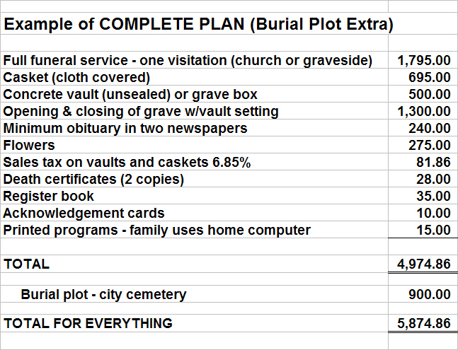 If the total cost for the casket you want with a package of services combined is more than $5,000, you are looking at an EXPENSIVE FUNERAL HOME. If you still don't own a burial plot, $6,000 will cover it all.