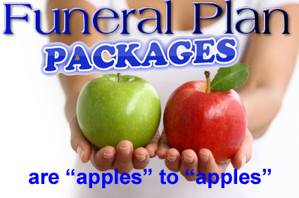 Package plans are nearly the same list of items and services from one funeral home to another, so you are in fact comparing "apples to apples."  Only the total cost or price is different from funeral home to funeral home.  Packages include everything that most families want to have paid for with a funeral.  Optional items, such as limousine, flowers, DVD tributes, printed programs are sometimes included, sometimes offered additionally for extra charges.
