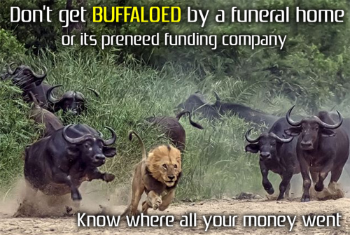 But here's the reality about these funeral homes and what they offer. Their typical full funeral with casket is right around $8,000, and if you finance that funeral plan through Great Western (or Forethought) over ten years, this plan will cost you on average around $15,000 per person. This is what I refer to as "getting BUFFALOED." You have to decide if it's worth doing business with any funeral home that will do this to senior citizens.