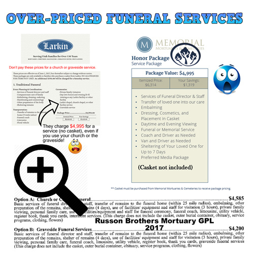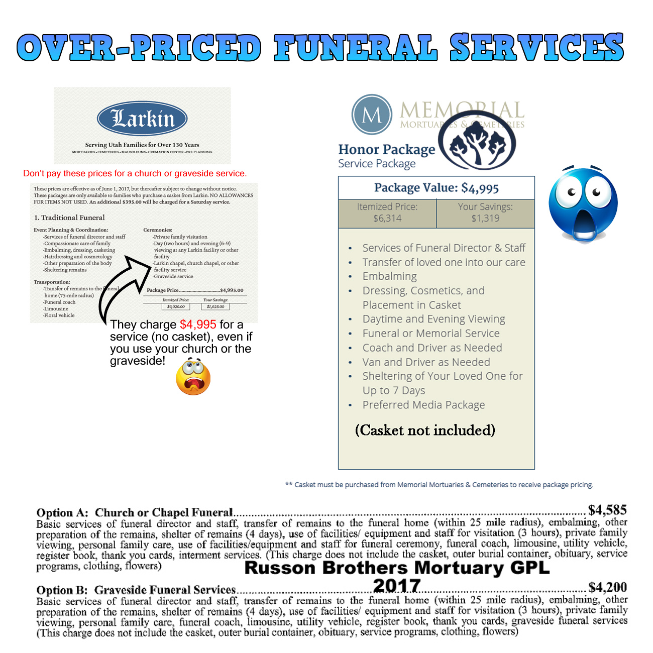 Because of this, however, the ownership may feel it is entitled to keep raising its prices year after year just like the chain funeral homes do. And they feel this is justifiable, since "prices are going up," and that's just the way it is. But they also may feel they must make a lot of money on their pre-paid, pre-need funeral plans. In Utah, many funeral home owners are loyal to Great Western Insurance Co., a funeral funding company based in Ogden, simply because it is a "Utah based" company.