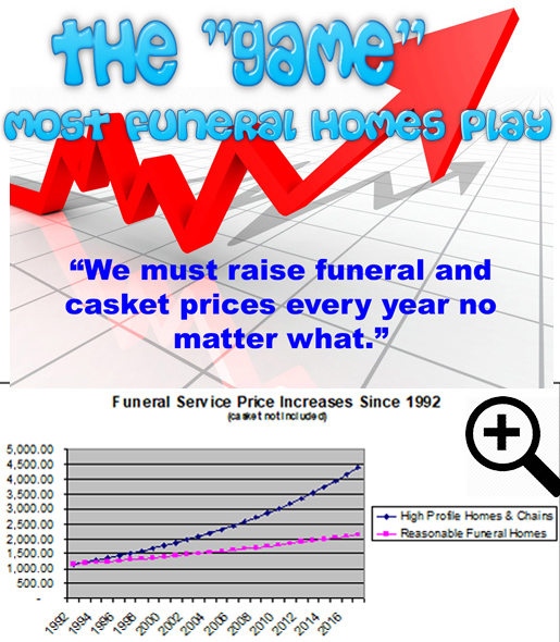 There are a number of funeral homes who hold the line on increasing prices year after year if there is no reason for them to raise prices. Examples locally are Premier Funeral Services, Cannon Mortuary, Holbrook Mortuary, Senerity Funeral Home (formerly Serenicare), and a number of others, They aren't "playing the game." See an example in another area of the country (and there are plenty more like this):