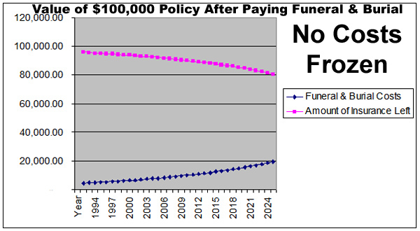 If all you rely upon is life insurance, you have no real control. Without the built in guarantees of a funeral plan, the funeral home will charge whatever they want and syphon that from your life insurance policy. There aren't any "checks" you can use whereby you have pre-determined what costs should be. On the other hand, I can set up a pre-paid guaranteed plan that will ensure your total cost for everything will stay in the neighborhood of $5,000 to $6,000--burial plot included. I am going to explain why. Even if you have life insurance, you can ensure that it is used for a better purpose than paying for a funeral, such as providing your survivors with income, paying off debts, etc. Buying life insurance with the sole purpose of paying for a funeral only should be done correctly or it can easily be a waste of money. The best deal of all is to pay cash now, if you have funds, for the guaranteed portion of the funeral. I can do this for you with National Guardian Life and Premier Funeral Services. For example, if you want to freeze the cost of just a casket and funeral service, you can write one check for some discounted amount less than $3,000 and those two things will be set in stone. (Go to my CALCULATOR PAGE to calculate discounts). Not only will you have these two things frozen, your plan will continue to grow in cash value for the rest of your life. Again, this means you could easily have money back.